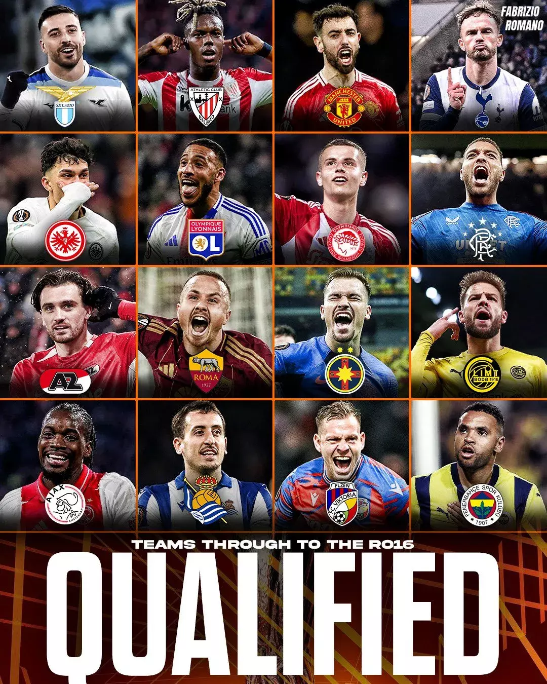 联赛阶段凯旋晋级球队:拉皆奥、毕尔巴鄂竞技、曼联、托特纳姆热刺、法兰克福、里昂、奥林匹亚科斯、格拉斯哥流浪者